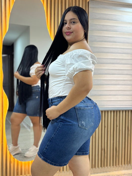 AHORRA 16%Bermuda Clarita Rotos - Tela Rigida