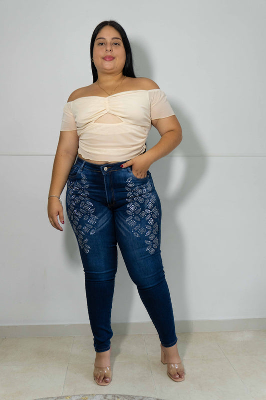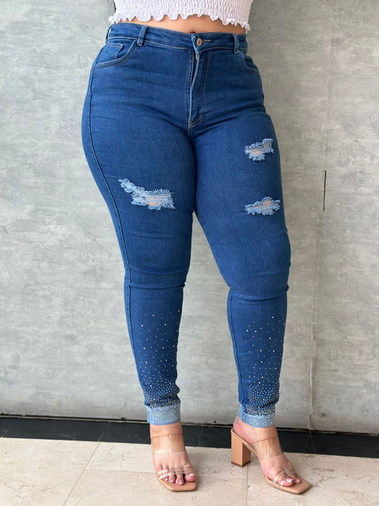 AHORRA 14%Jeans Skinny Brillos Flor- Tela Strech