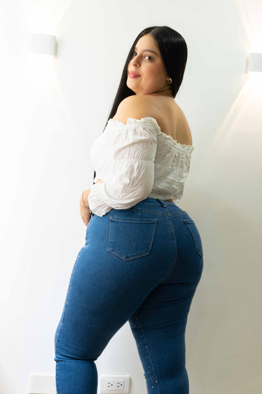 Jeans Skinny Brillos en Bota - Tela Strech Premiún