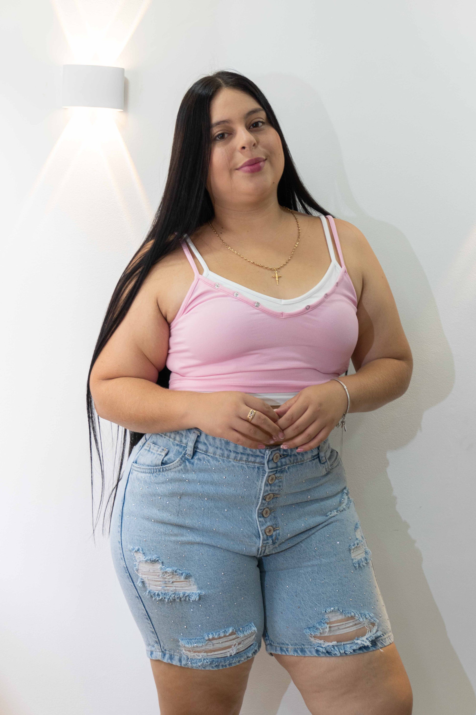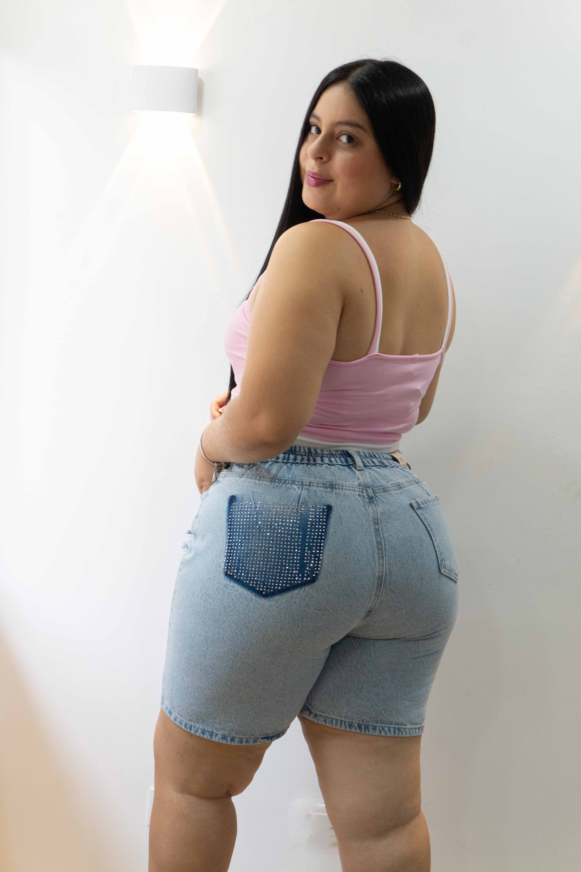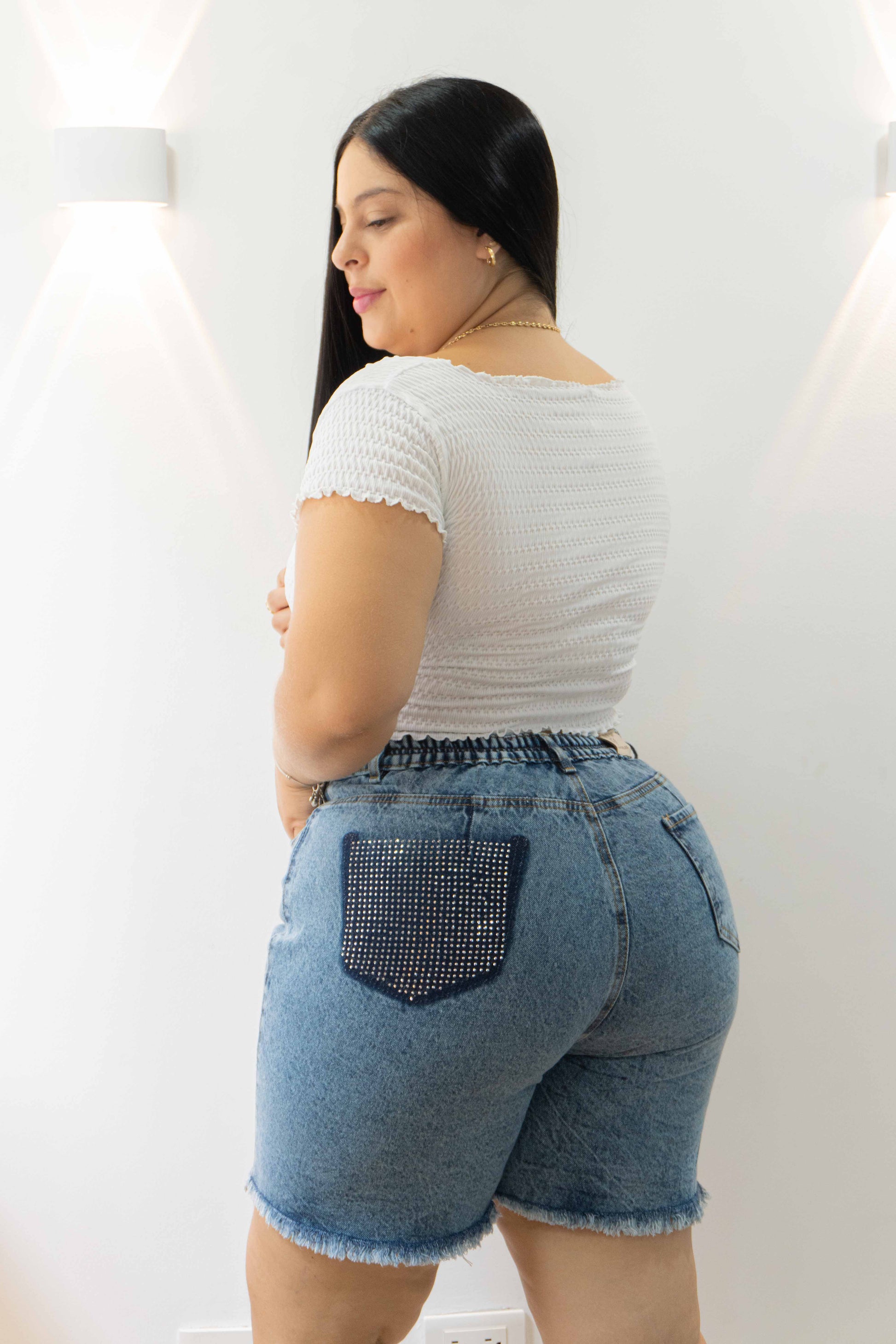 Esta bermuda cargo en tela rígida talla plus no es solo una prenda, es una actitud. Con un largo cómodo que estiliza y unos brillos aplicados con el toque justo, esta bermuda es perfecta para elevar cualquier outfit sin perder la esencia urbana.