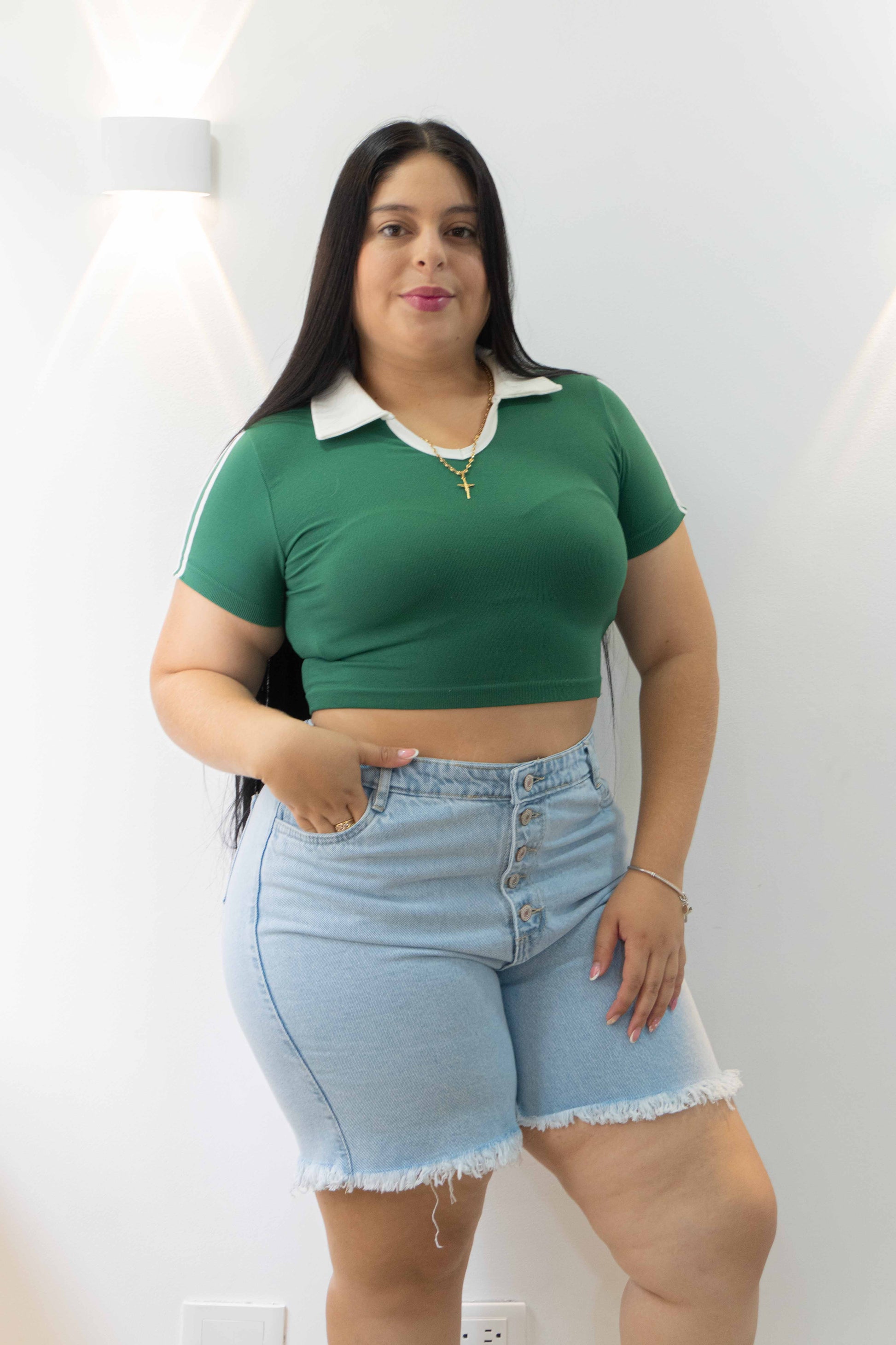 Esta bermuda cargo en tela rígida talla plus no es solo una prenda, es una actitud. Con un largo cómodo que estiliza y unos brillos aplicados con el toque justo, esta bermuda es perfecta para elevar cualquier outfit sin perder la esencia urbana.