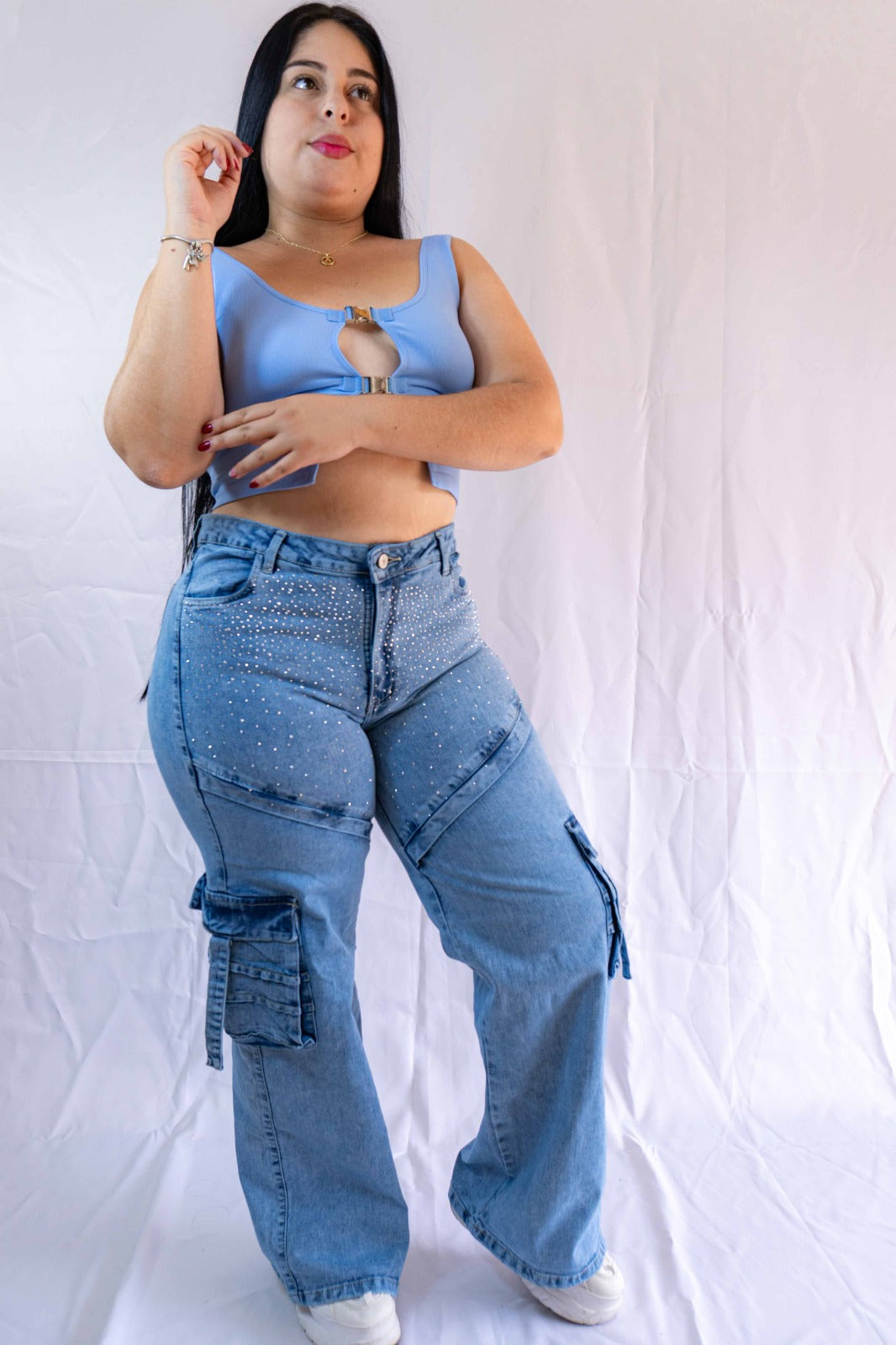 Este jean cargo talla plus en tela stretch no es cualquier pantalón: es ese aliado que se adapta a tu cuerpo, realza tu figura y te da libertad para moverte con confianza.
