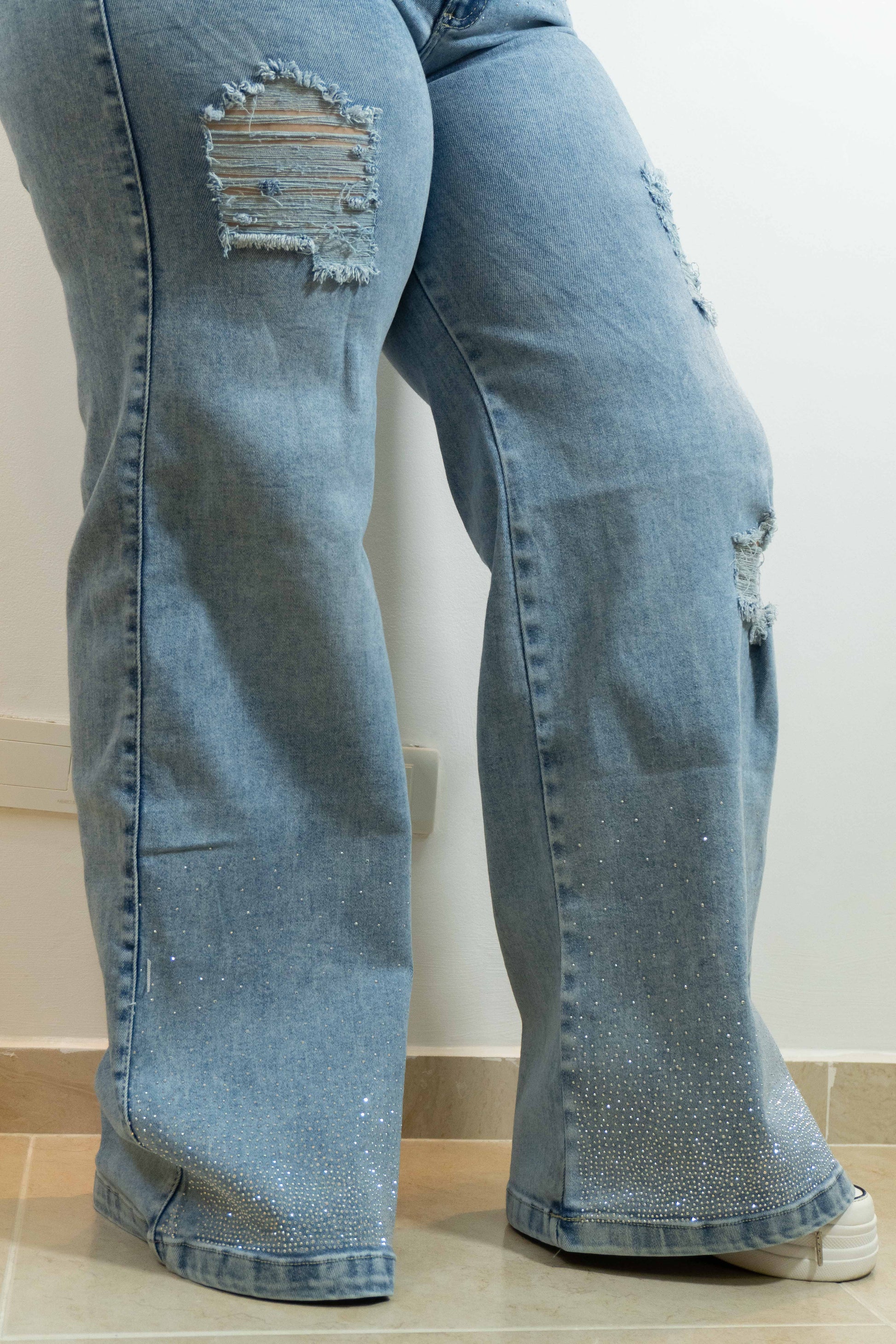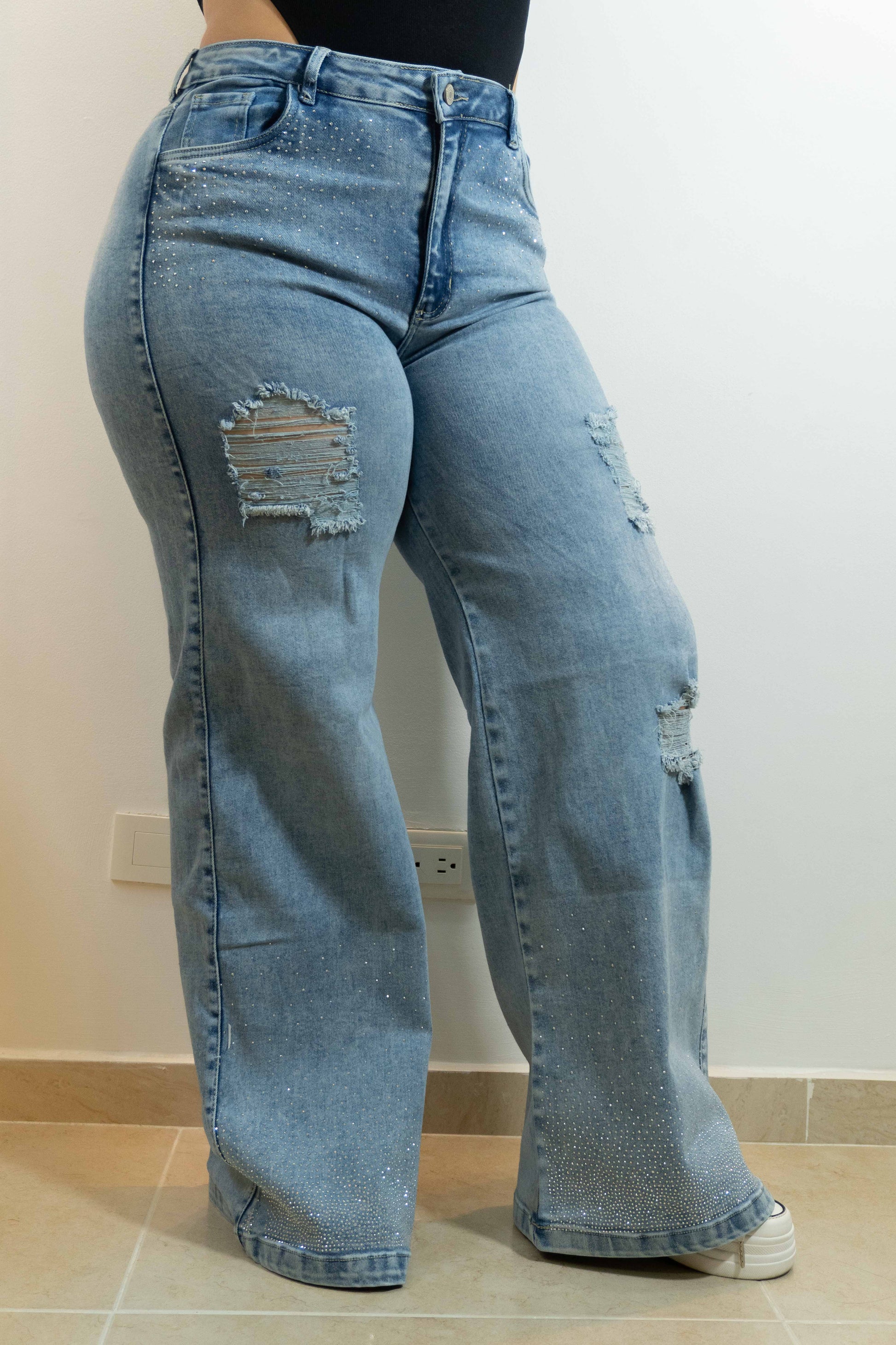 Este jean wide leg brillos en tela strech premiún no es para pasar desapercibida, es para marcar estilo. Su silueta amplia aporta ese toque urbano y relajado, mientras que los rotos estratégicos le dan ese aire rebelde que todas amamos.