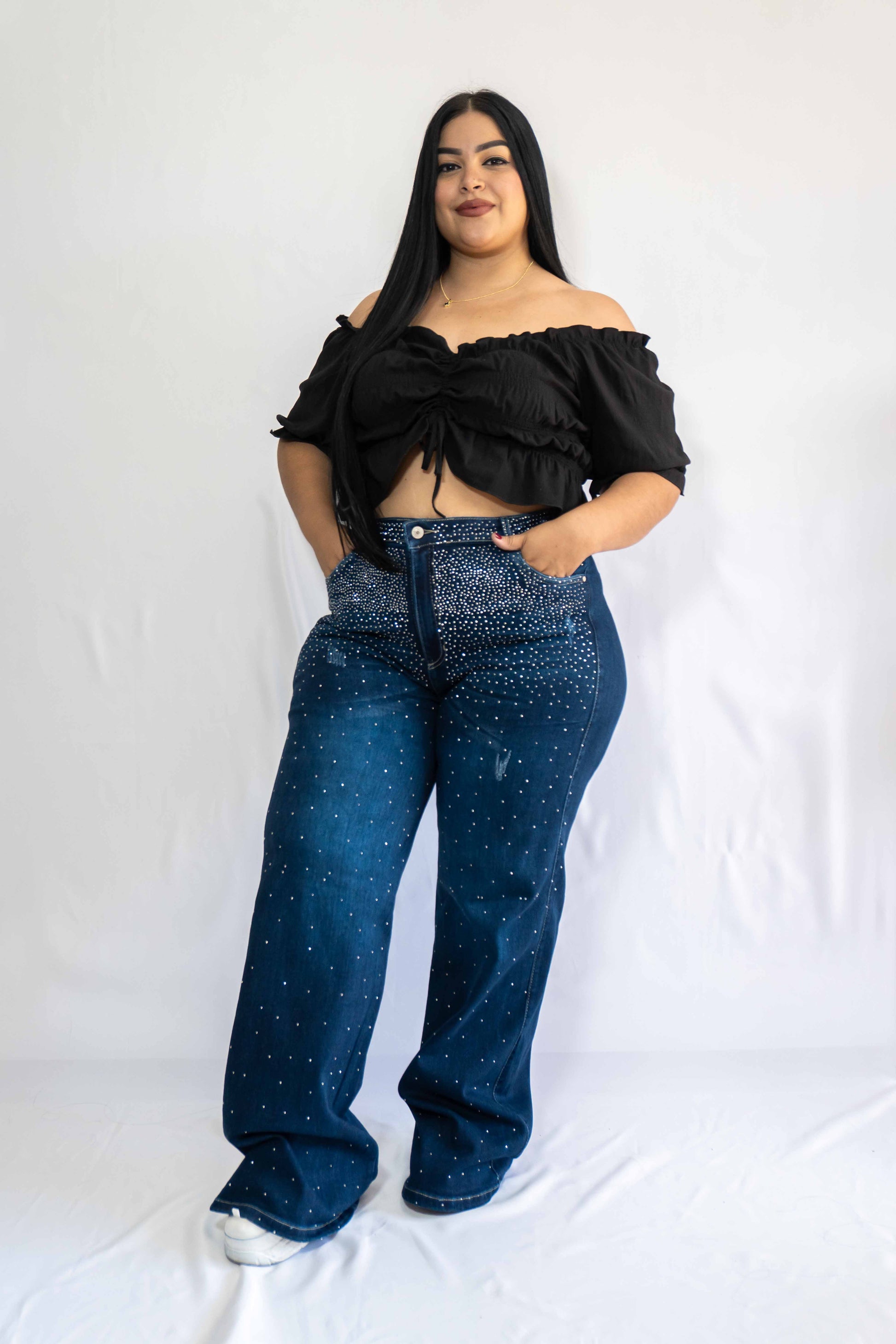Este jean wide leg brillos en tela strech premiún no es para pasar desapercibida, es para marcar estilo. Su silueta amplia aporta ese toque urbano y relajado, mientras que los rotos estratégicos le dan ese aire rebelde que todas amamos.
