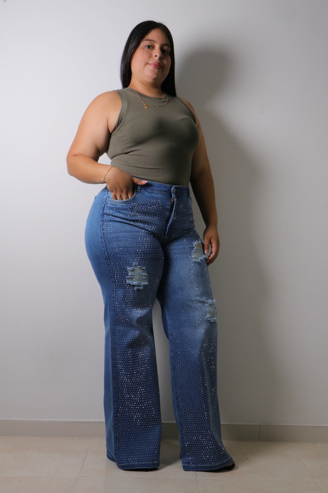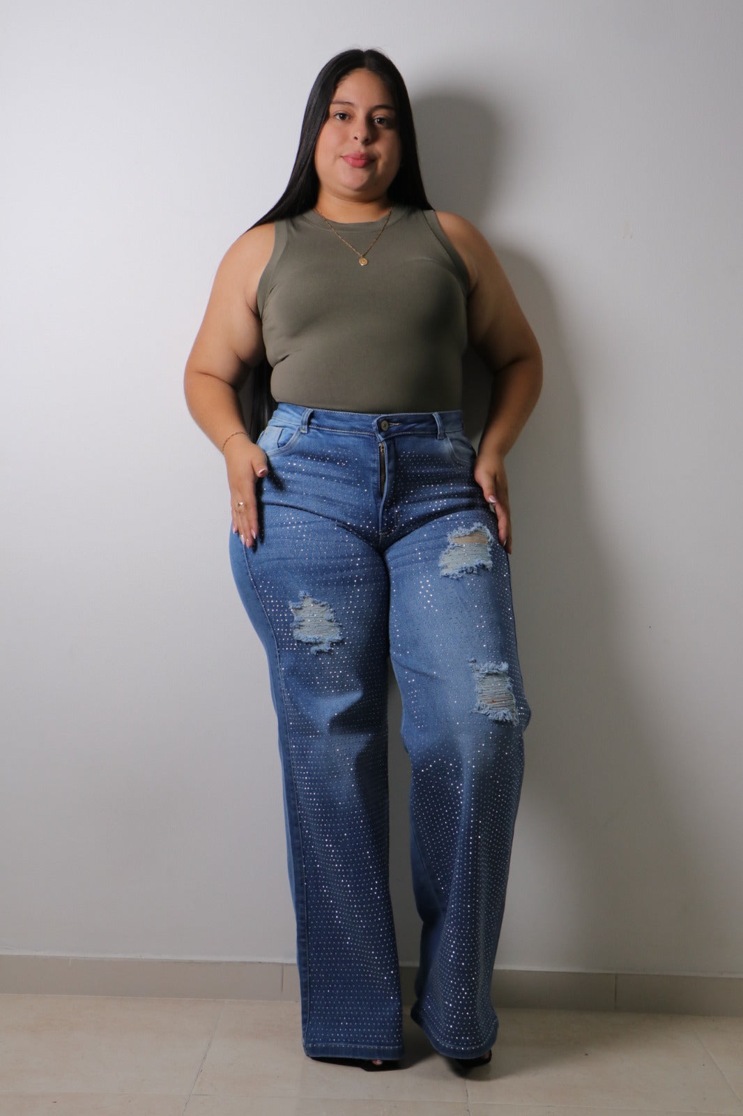 Este jean wide leg brillos en tela strech premiún no es para pasar desapercibida, es para marcar estilo. Su silueta amplia aporta ese toque urbano y relajado, mientras que los rotos estratégicos le dan ese aire rebelde que todas amamos.